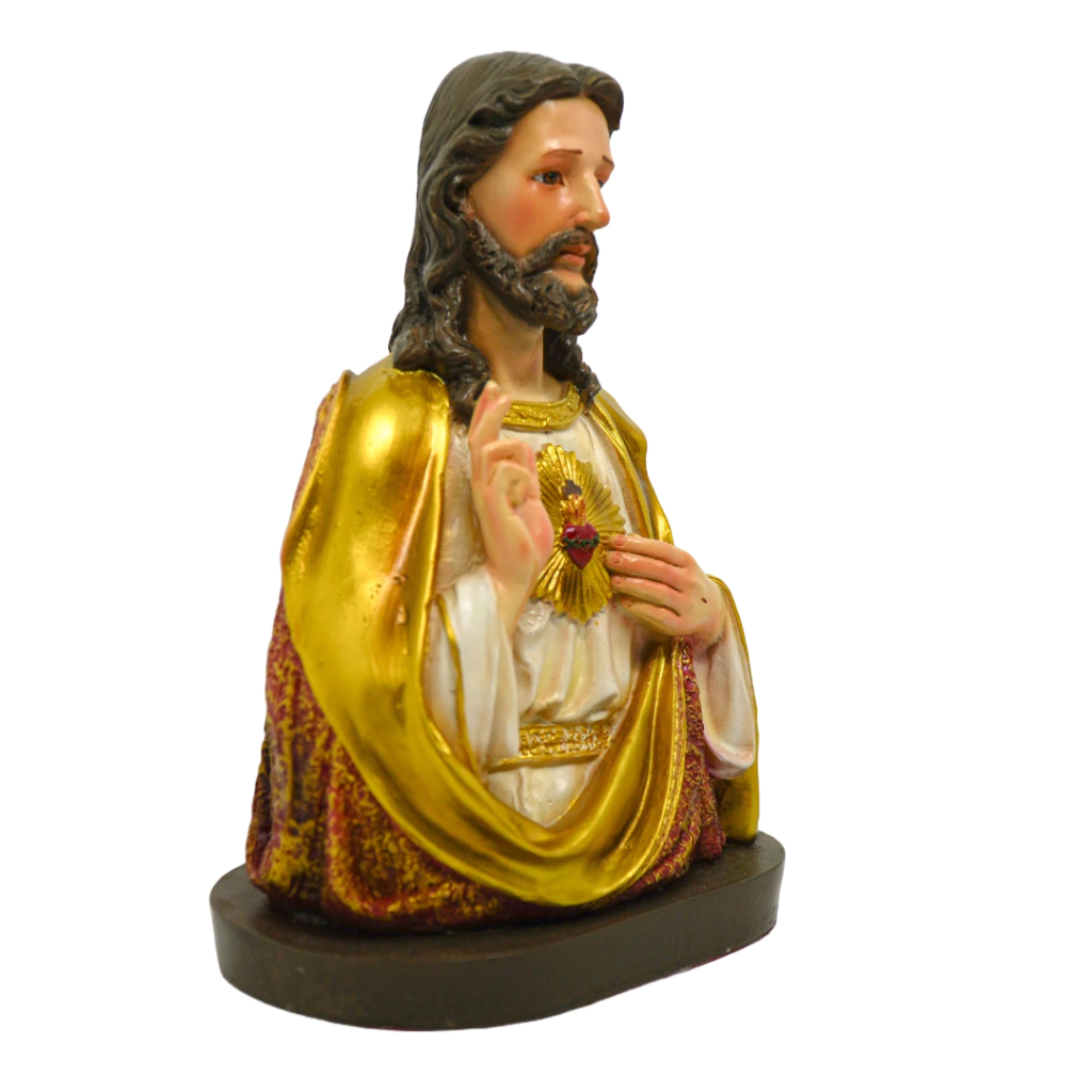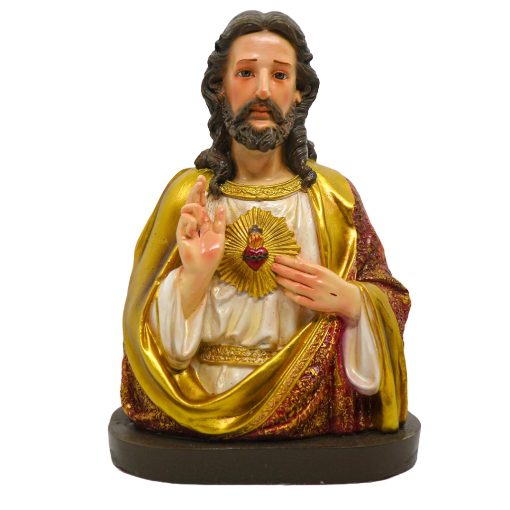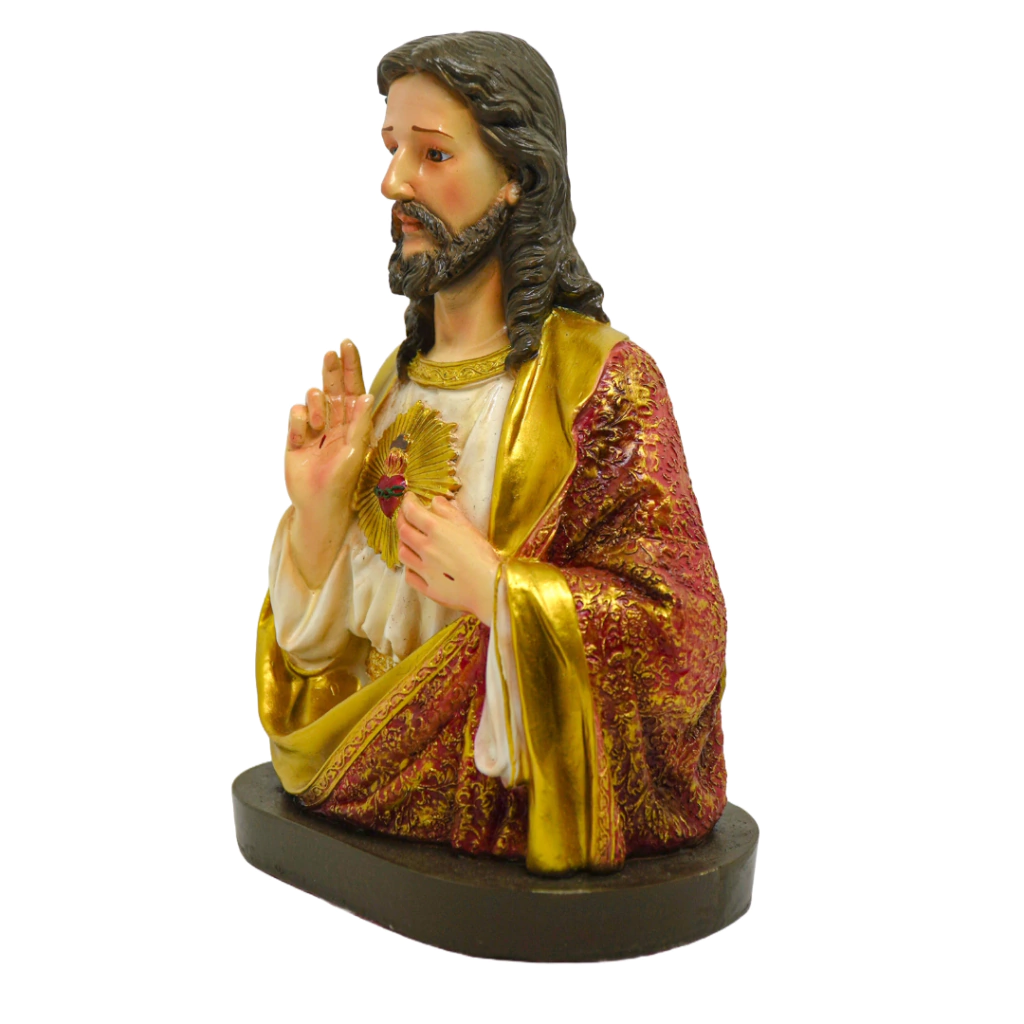 O Coração de Jesus é um símbolo de amor e misericórdia infinitos. Este busto, com sua policromia detalhada e gesto abençoante, serve como um ponto de inspiração e devoção para os fiéis, incentivando a reflexão sobre o amor divino e a proteção que Cristo oferece. Ideal para aqueles que desejam aprofundar sua espiritualidade e honrar o Sagrado Coração de Jesus.