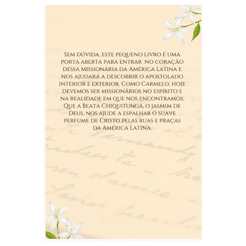 "Diários Íntimos da Beata Maria Felícia de Jesus Sacramentado (Chiquitunga)" é uma obra que oferece uma visão profunda da vida espiritual e das experiências místicas de Maria Felícia de Jesus Sacramentado, conhecida como Chiquitunga, uma beata carmelita nascida no Paraguai e reconhecida por sua intensa vida de oração e devoção.