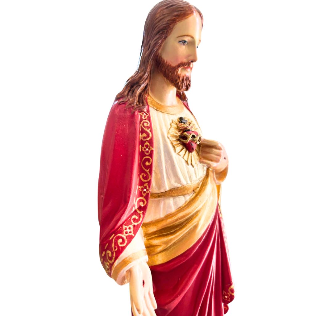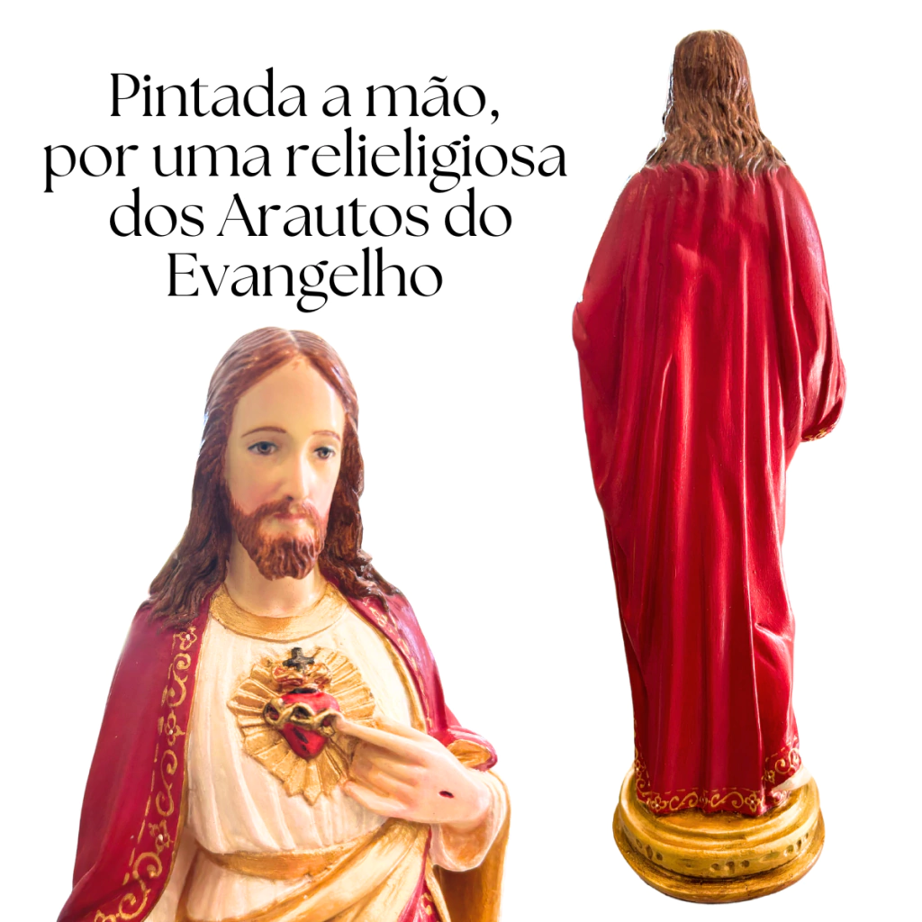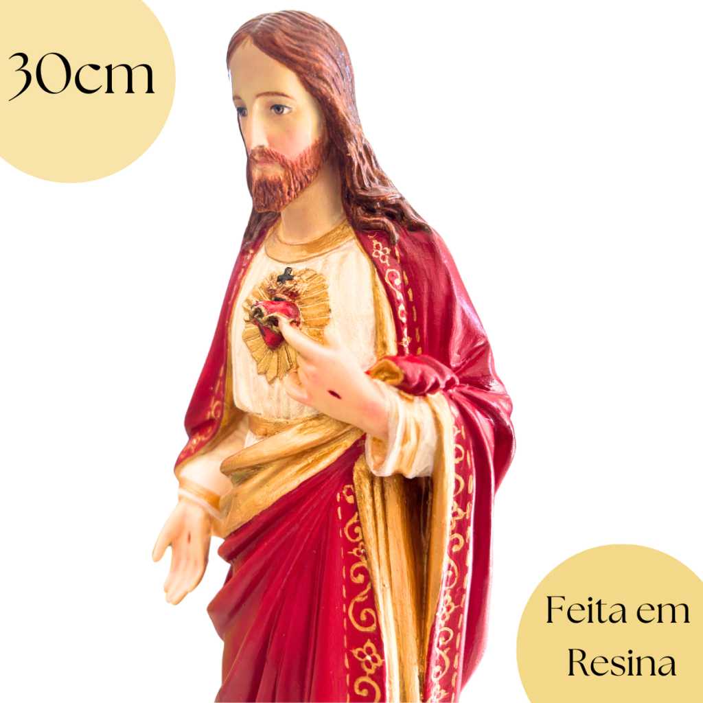 A estátua de "Sagrado Coração de Jesus - 30 Cm" oferece uma representação vibrante e expressiva do Coração de Jesus, simbolizando Seu amor e misericórdia infinitos. Policromada com cores detalhadas e meticulosos acabamentos, esta peça é ideal para altares e espaços de devoção, destacando a beleza e a profundidade espiritual do Sagrado Coração.
