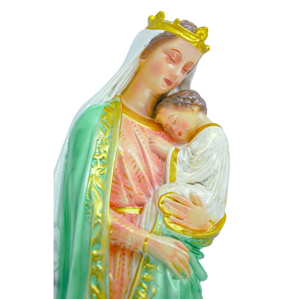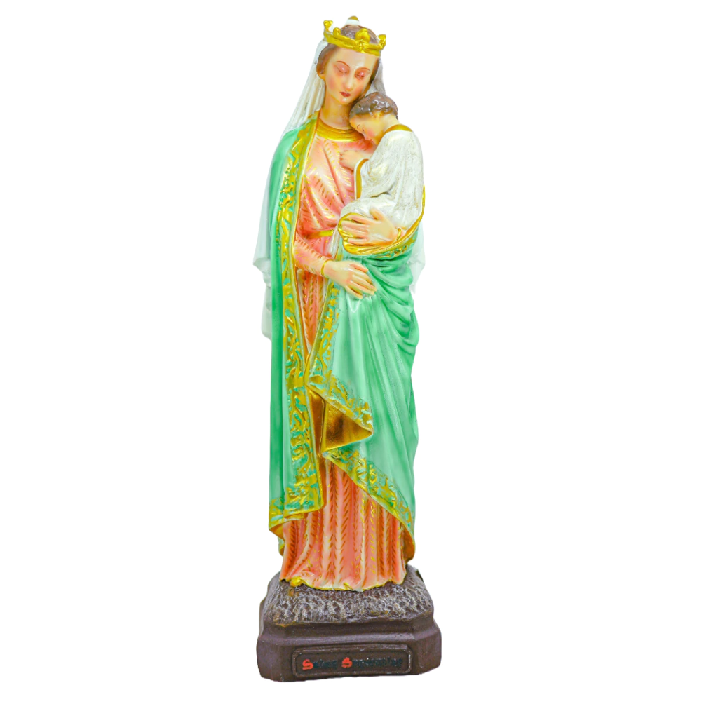 A estátua de "Sedes Sapientiae - Policromado - 40 Cm" oferece uma representação majestosa e detalhada da Virgem Maria como Sedes Sapientiae, a "Sede da Sabedoria". Policromada com cores vibrantes e meticulosos detalhes, esta peça é ideal para altares e espaços de devoção, destacando a majestade e a importância da Virgem Maria como portadora da Sabedoria Divina.